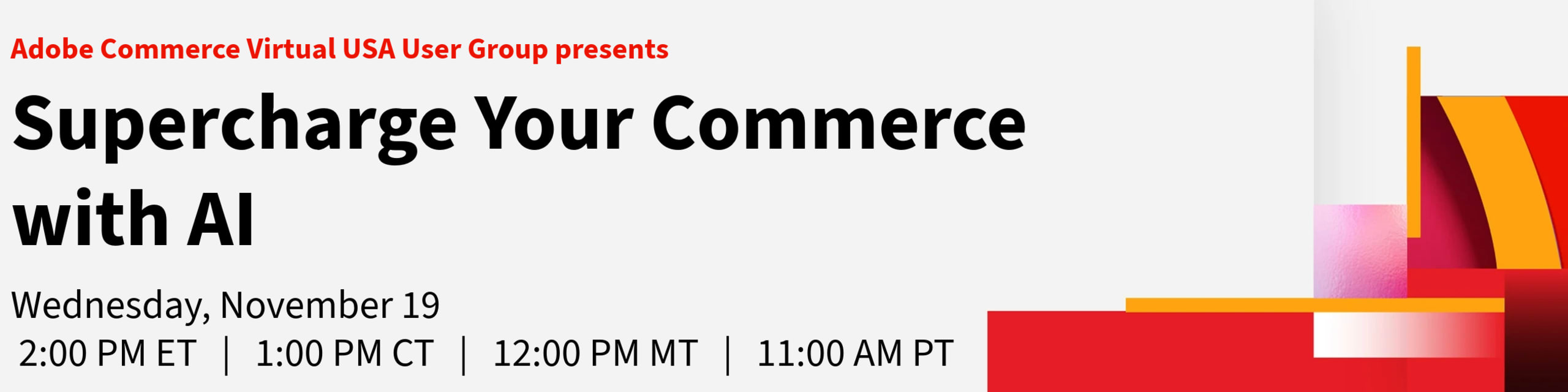 For our November Adobe Commerce Virtual USA User Group event, our focus will be on supercharging your commerce operations with the power of AI. Dive into insightful talks with industry experts like Michael Schenck, who will explore Live Search and Product Recommendations, and Ryan Sun discussing the innovative AI Admin Assistant.